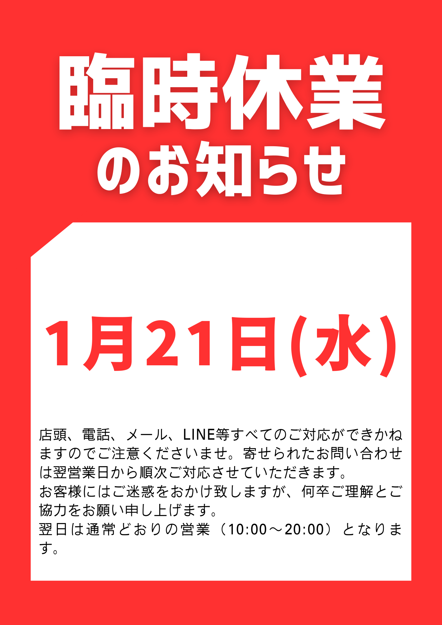 店頭、電話、メール、LINE等すべてのご対応ができかねますのでご注意くださいませ。