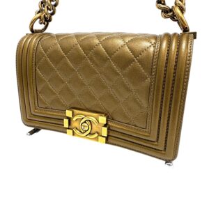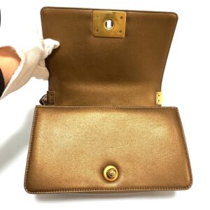 ボーイシャネルには傷に強いキャビアスキンも多いですが、このブロンズカラーにおいて、ラムスキンであることは大きな意味を持ちます。